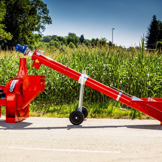 Особое преимущество устройства состоит в его большой производительности, а также в том, что оно с помощью специальной молотковой дробилки позволяет размельчать сырую кукурузу с низкой и высокой степенью влажности и перемещать ее с помощью встроенного мощного вентилятора на максимально возможную высоту.